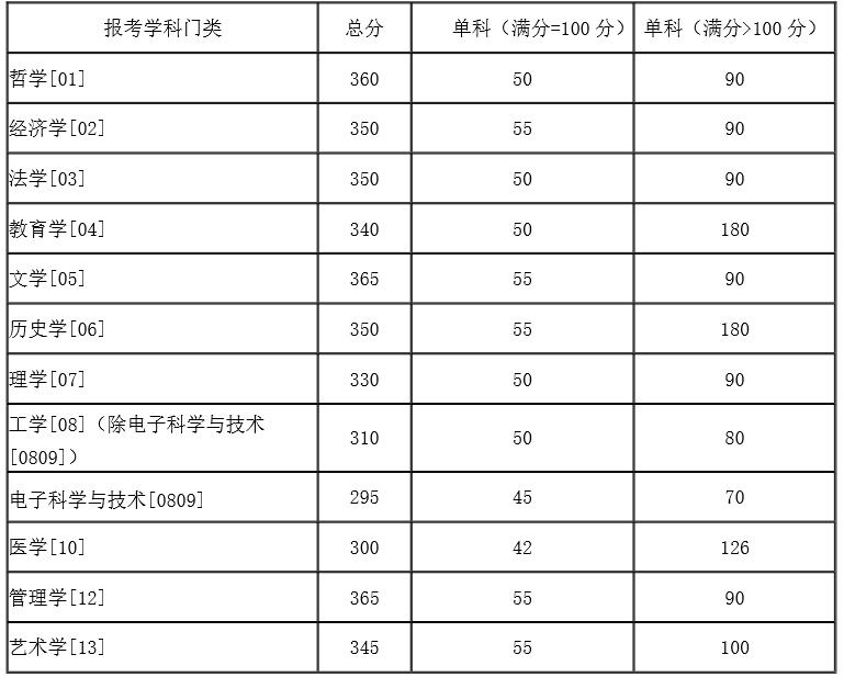 一、报考我校考生进入复试的初试成绩基本要求(学术学位类)