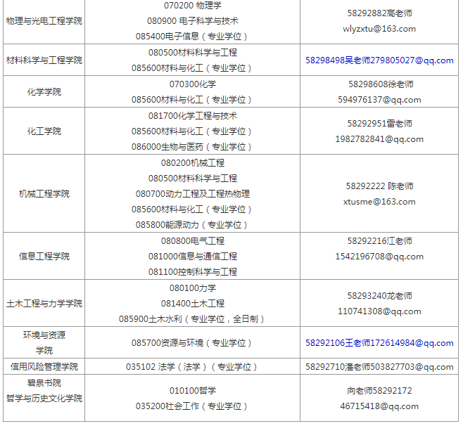 注:以上学院非工作日或非正常上班时间均不接受电话咨询。