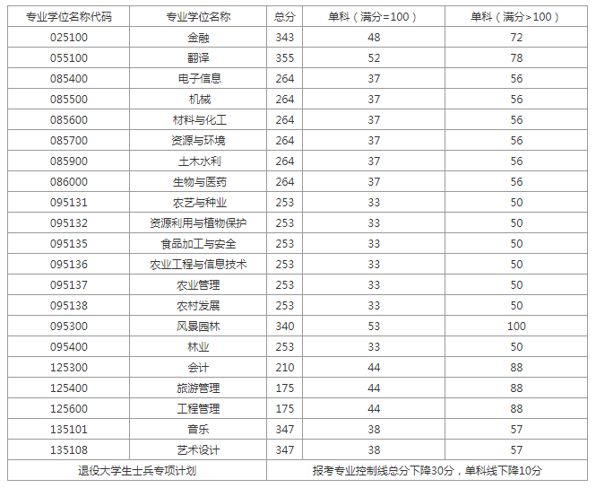 二、报考我校考生进入复试的初试成绩基本要求(专业学位类)