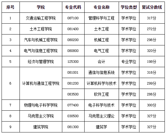 2、院系所各专业的复试分数线按照不高于1:1.5的比例划定,一志愿生源不足计划数的专业学术学位按照按照校内基础分数线,各专业具体基本分数线见上表。