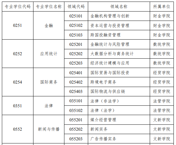 2、湖南工商大学专业学位硕士接收调剂专业领域一览表