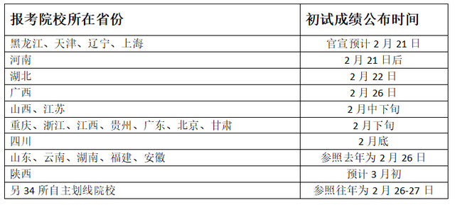 初试成绩的公布总体参照各省(市)教育考试院统一部署安排、各招生单位同步公布的惯例,目前各官方渠道获悉的查分时间点汇总如下: